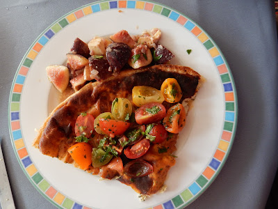 11. Servez la tarte avec les tomates en morceaux et la salade de figues.